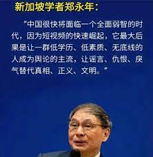 新加坡学者郑永年说,中国将面临一个全民弱智的时代。
